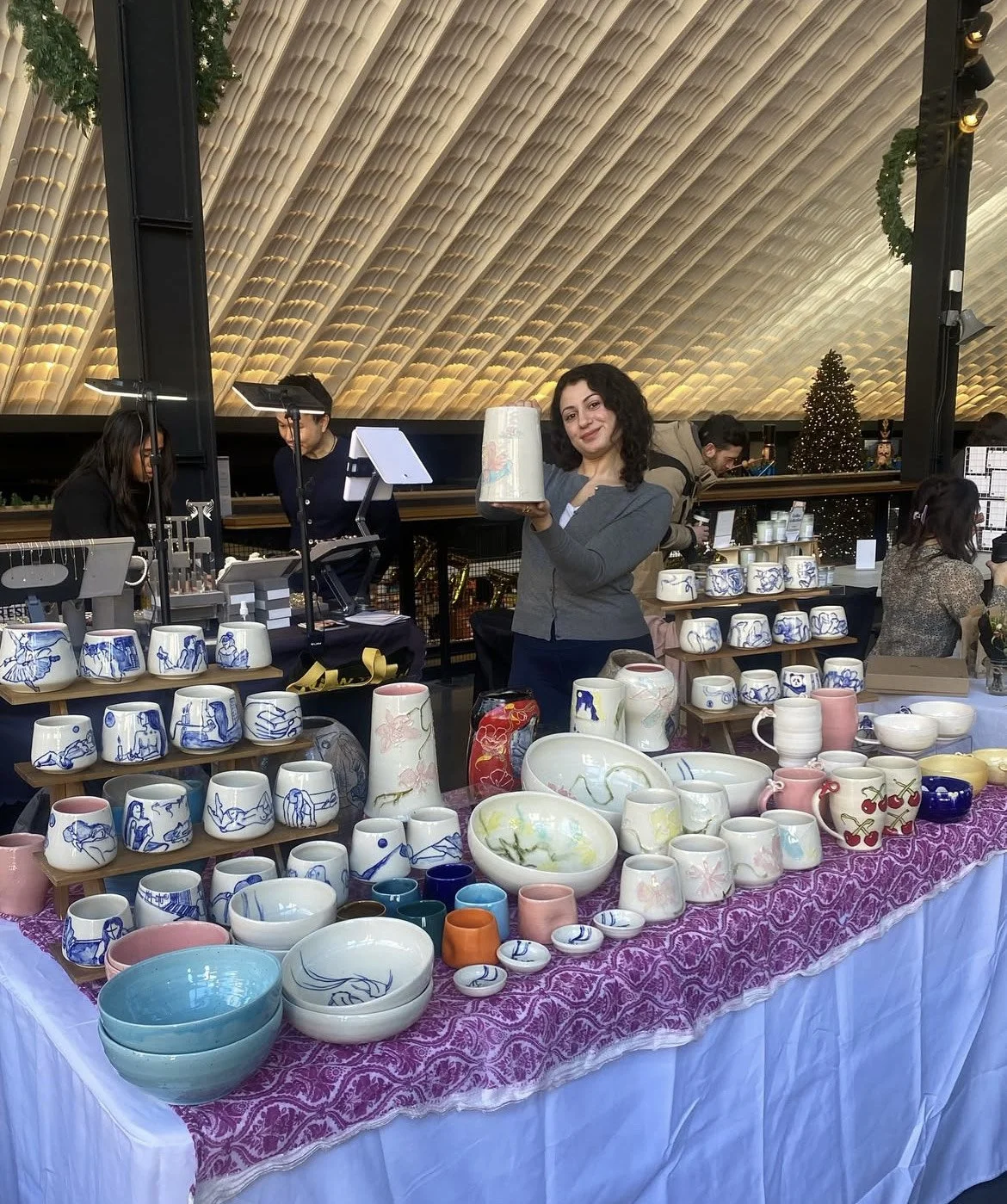 Mia Marie was born in New York City. She began practicing ceramics at the age of thirteen at Buxton, a boarding school in Massachusetts. She graduated from Guilford college in 2019, completing her Bachelor of Fine Arts with a focus in ceramics. After college she began working and teaching at various studios in New York City. She finished the Emerging Artist residency, a three month program at Air Vallarius in Vallarius, France. In addition to her ceramic work she began drawing during the pandemic. Mia is now making pottery at Powerhouse Arts in Brooklyn, New York and selling her work at various markets in New York City.